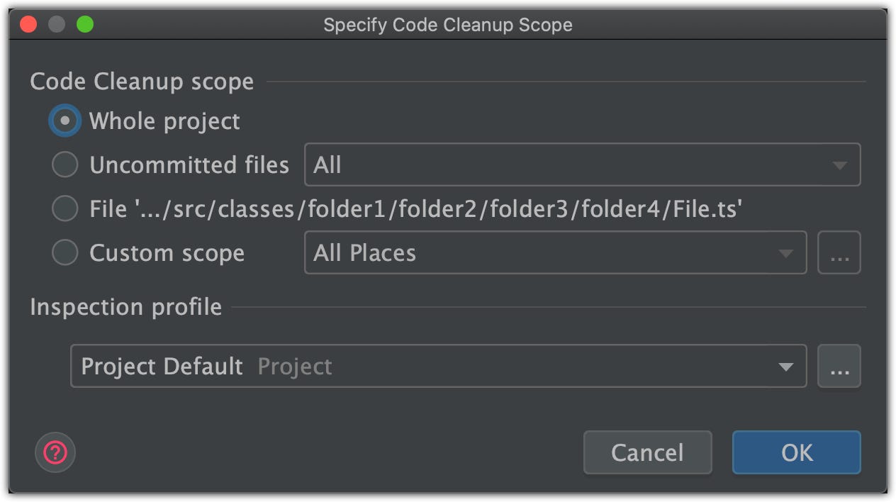 ⚠️ NOTE: If you want to reformat only specific lines you can select required lines and use the “Auto-Indent lines” action via [Control+Option+I] hotkey: